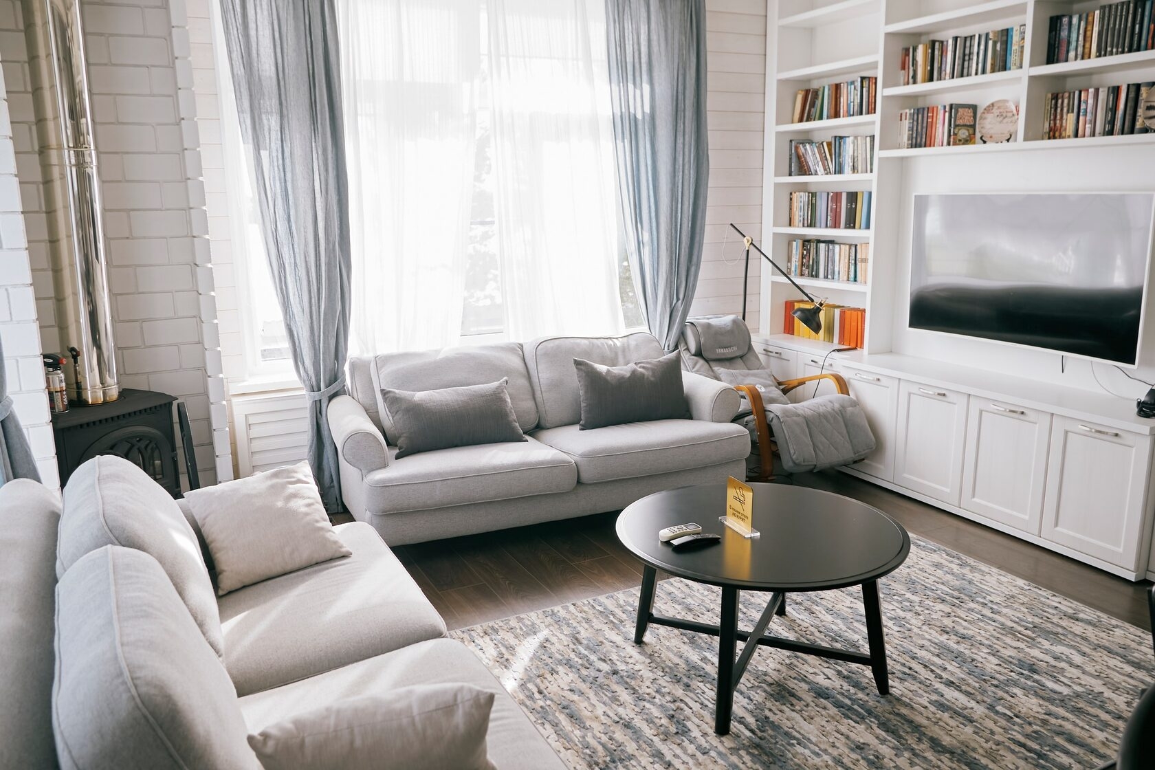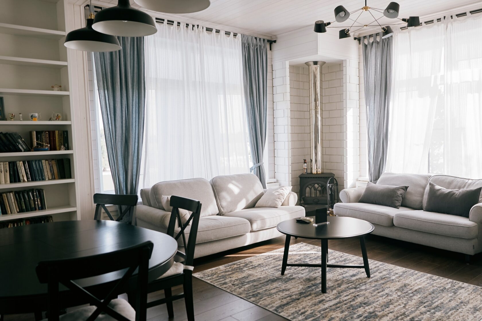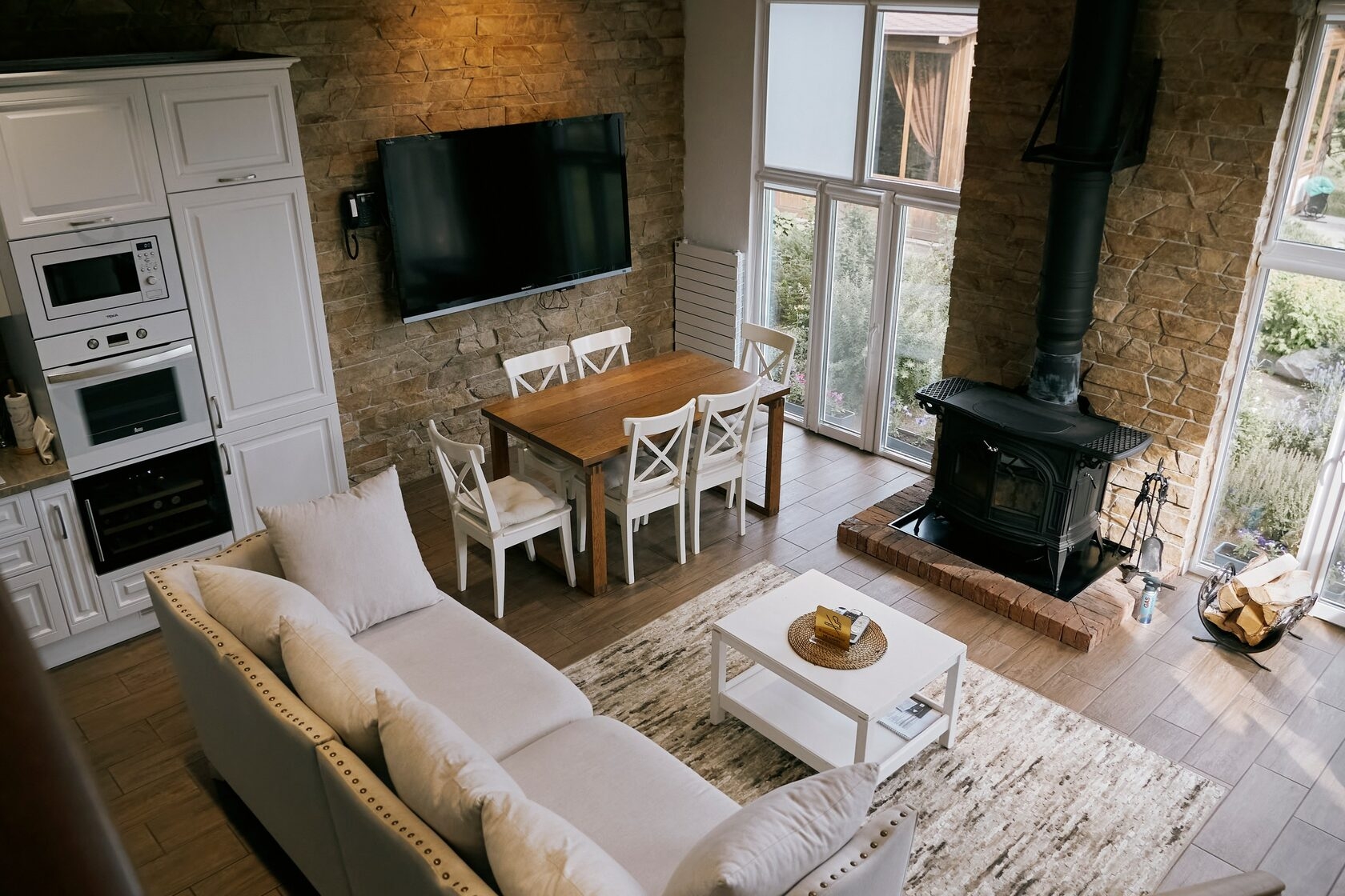 чугунной печью и видом на парк.