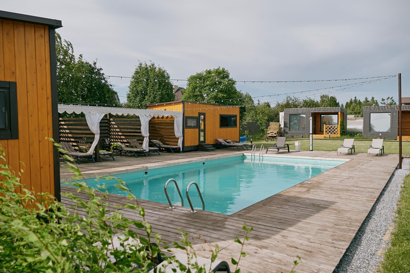 Расположены около открытого бассейна и сенных бань