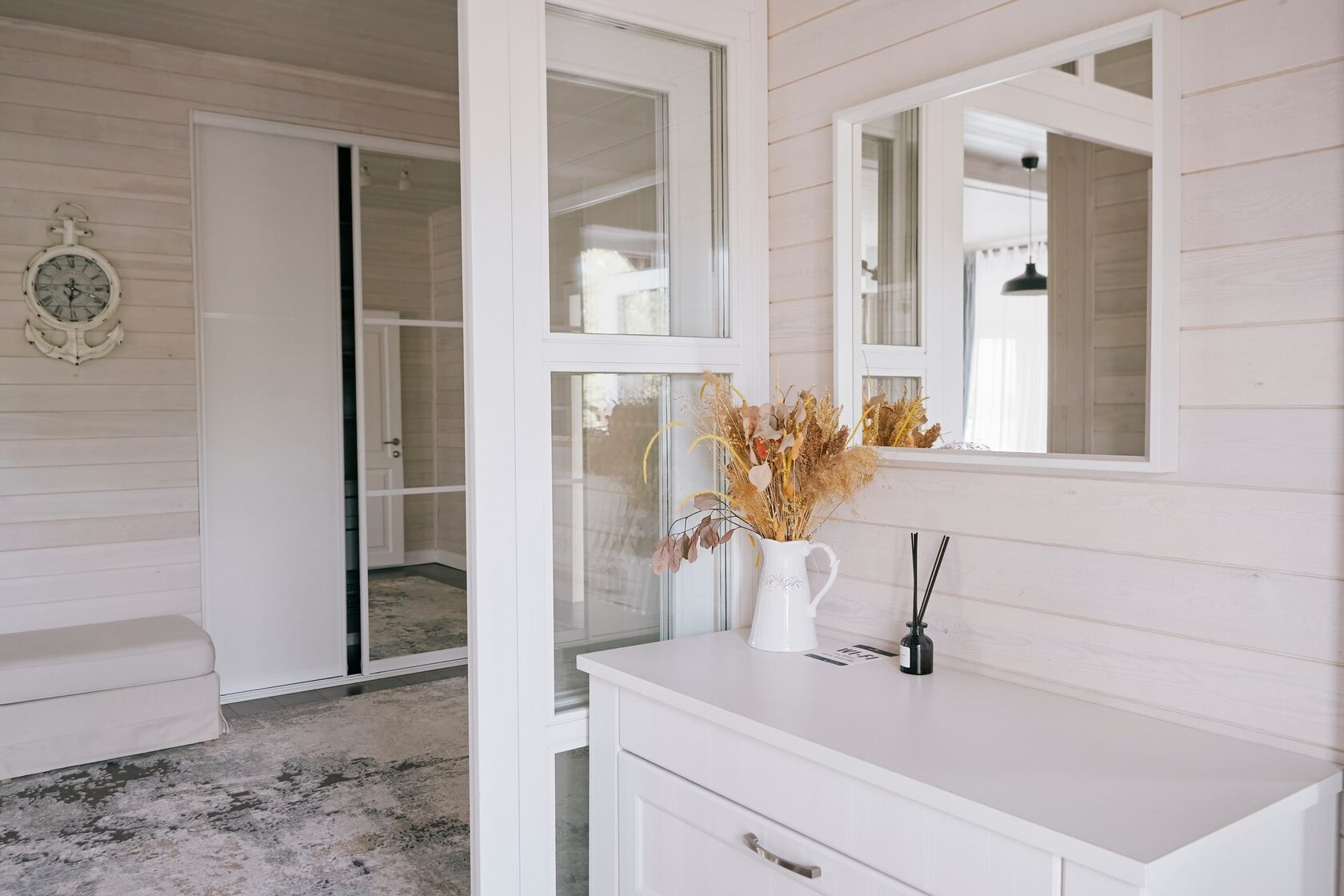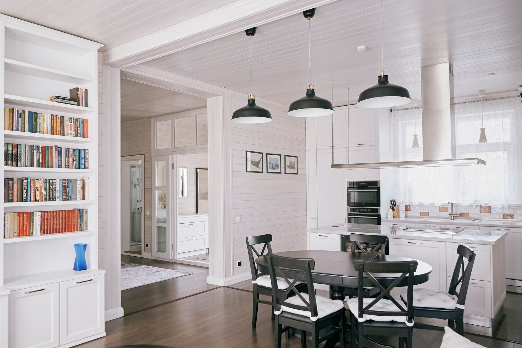 Дом с «прекрасным видом» на бескрайний речной простор, с небольшим дровяным камином, просторной кухней-студией.